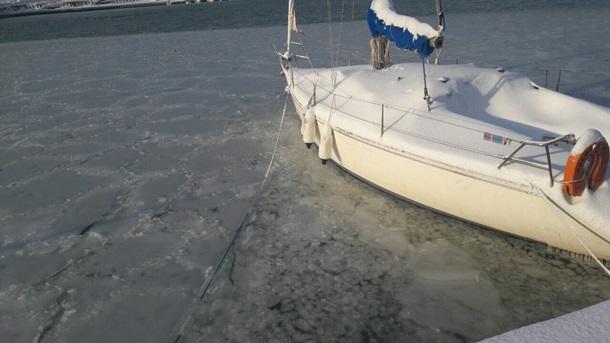 Лед сковал почти все побережье Черного моря у города Бургас, ряд судов оказались заблокированными, некоторые из них, по сообщениям местных СМИ, полностью покрыты льдом.