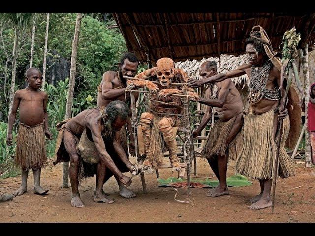Не менее удивительно и то, что африканские носители «великого и могучего языка» оказались агрессивными каннибалами. Туземцы вооружены палками и камнями и воспринимает других людей, как еду.
