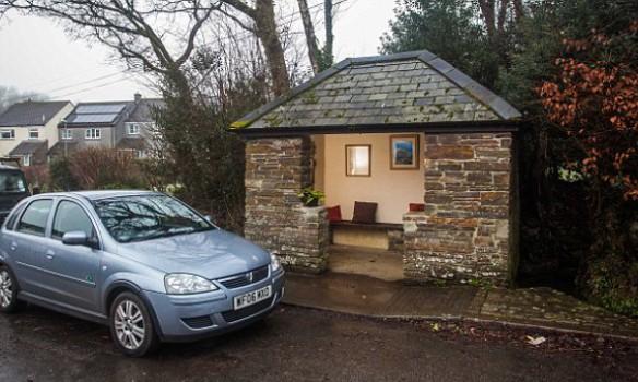 Неизвестный житель Великобритании превратил обычную деревенскую автобусную остановку в уютное помещение, более похожее на комнату в жилом доме.