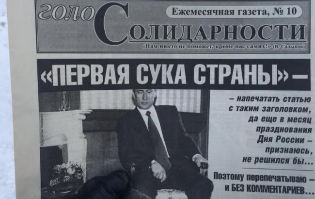 Российское издание "Голос солидарности" вышло с материалом "Первая сука страны" на обложке. Статью иллюстрировали фотографией президента Владимира Путина, рядом с которым сидит его собака.