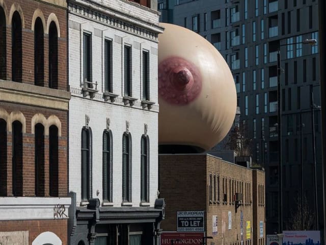 Огромная надувная грудь появилась на одном из зданий лондонского района Шордич.
