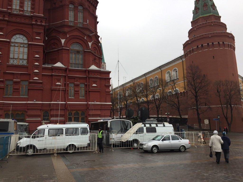 Сегодня днем 2 апреля, Манежная площадь в центре Москвы оказалась перекрыта металлическими заграждениями.