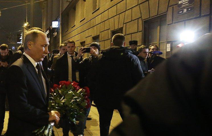 В Питере президент России возложил цветы на входе у станции метро "Технологический институт" в память о погибших в результате теракта в подземке.