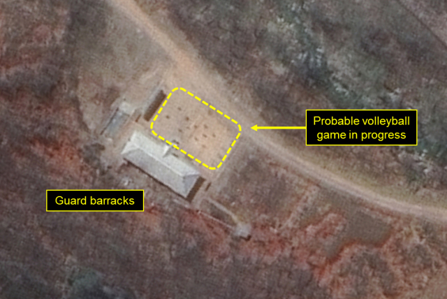 «Мы видим, что в трех местах на объекте - в главной административной зоне, на вспомогательной площадке, в командном центре и в караульном помещении возле командного центра - у них идут игры в волейбол», - сообщил эксперт 38 North Джо Бермудес , передает Reuters.