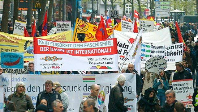 Как отмечает издание Bild, около 10 тысяч людей вышли на улицы города для того, чтобы помешать проведению партийного съезда. Один из демонстрантов совершил нападение на депутата партии. На это время атмосфера в городе напряженная. Безопасность на улицах обеспечивают четыре тысячи полицейских, двое из которых, по информации Bild, уже получили ранения.