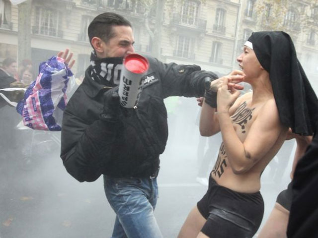 Напомним, первый раз девушки оголили груди на людях во время демонстрации противников браков в Париже (не традиционных, а однополых).