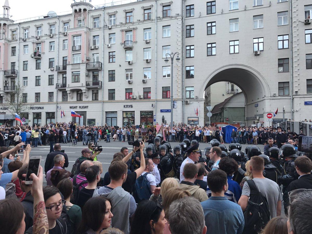 Руководитель благотворительного фонда "Нужна помощь" Митя Алешковский опубликовал в Твиттере несколько фото и видео с места событий на Тверской в Москве.