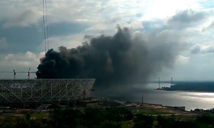 В российском Волгограде сегодня, 14 июня, горел стадион, строящийся к ЧМ-2018. Очевидцы сообщают, что над объектом были видны черные клубы дыма.