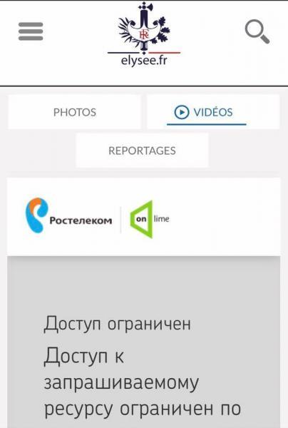 На территории России ограничен доступ к странице сайта Елисейского дворца, на которой размещена информация о встрече президентов Украины и Франции.