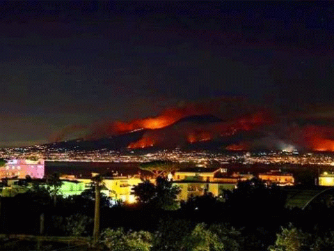 На юге Италии проснулся вулкан Везувий, поэтому власти Неаполя осуществляет эвакуацию местных жителей. Пожар на склонах Везувия продолжается уже пять дней. Усилия пожарных напрасны - новые очаги пламени охватывают гектары зарослей.