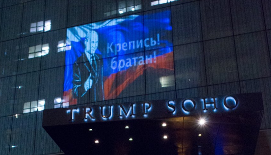 Вчера вечером, 7 августа, на здании гостиницы Trump SoHo в Нью-Йорке, которая является собственностью действующего главы США Дональда Трампа, спроецировали лик Путина на фоне флага РФ.