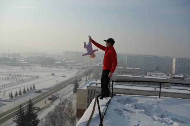 Потом еще оказалось, что этот псих делал фотографии на высотке, где он держит свою дочь вниз головой, стоя на краю крыши.