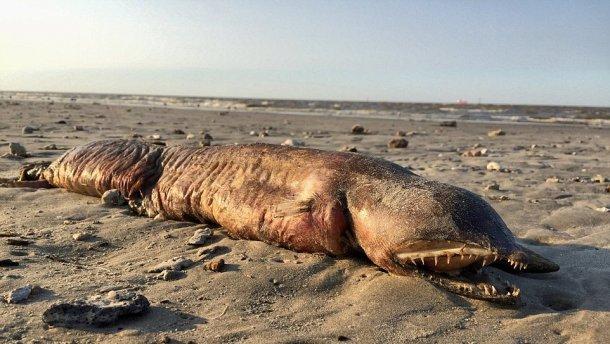 По всей видимости, у безглазого мертвого животного рот полон острых зубов и у него большое цилиндрообразное тело, передает Час Пик со ссылкой на зарубежные СМИ.
