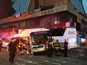 Автокатастрофа произошла около 6 часов утра, когда рейсовый автобус, управляемый водителем с 10-летним стажем, совершил поворот вправо, то в него въехал туристическим автобус, двигающийся по той же трассе. Об этом сообщили городские чиновники. Один из автобусов вполседствии "влетел" в здание, сказал мэр Нью-Йорка.