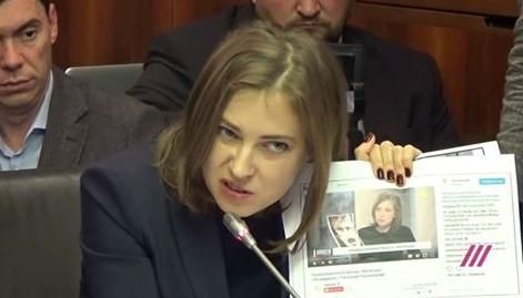 На сайте "Медуза в Твитере" опубликован видеоролик с подписью: "Тем временем в стенах Госдумы Наталья Поклонская выжигает глаголом «Матильду». Заседание рабочей группы закончили общей молитвой".
