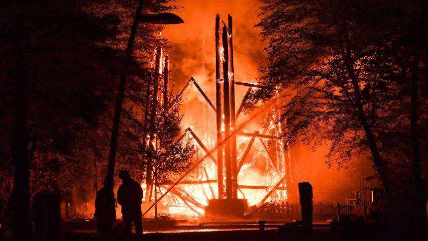 Zur Zeit wird die Umgebung und ein in der Nähe befindliches Café gekühlt bzw. geschützt. Der Turm selbst ist leider nicht mehr zu retten.^rh pic.twitter.com/ZoSSMDB4Tb
