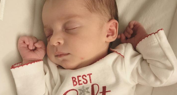 Девочка увидела свет 25 ноября 2017. Малышке, которая родилась с весом 3 кг и с ростом 51 см, дали имя Эмма Врен Гибсон. Она родилась в результате процедуры искусственного оплодотворения.