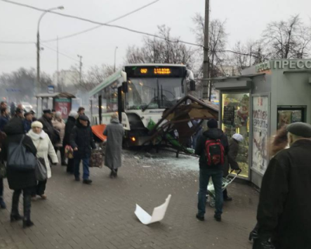 В российской столице произошло второе за неделю серьезное ДТП с автобусом. Водитель не справился с управлением и врезался в остановку, где стояли люди.