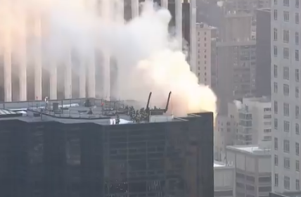 СМИ обнародовали видео, на котором видно, как с крыши "Башни Трампа" валит густой белый дым.