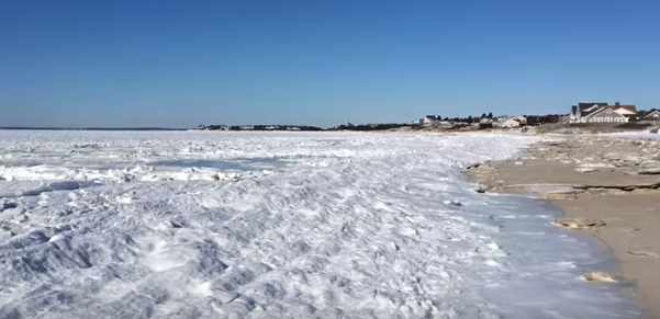 Житель Массачусетса Райан Кэнди показал видео замерзшего океана возле пляжа Old Silver Beach. Это редкое явление, которое, по словам местных жителей, произошло лишь в третий раз за последние 80 лет.