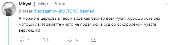 Каким-то образом среди верующих затесался лидер путинских байкеров «Ночные волки» по кличке Хирург. «Хорошо хоть без мотоцикла!» - пошутил один из комментаторов.