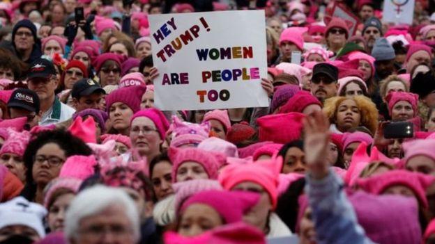Акция, которая состоялась в эту субботу, 20 января, собрала не только противников Трампа, на улицы вышли люди в поддержку кампании #MeToo против притязаний и сексуального насилия.