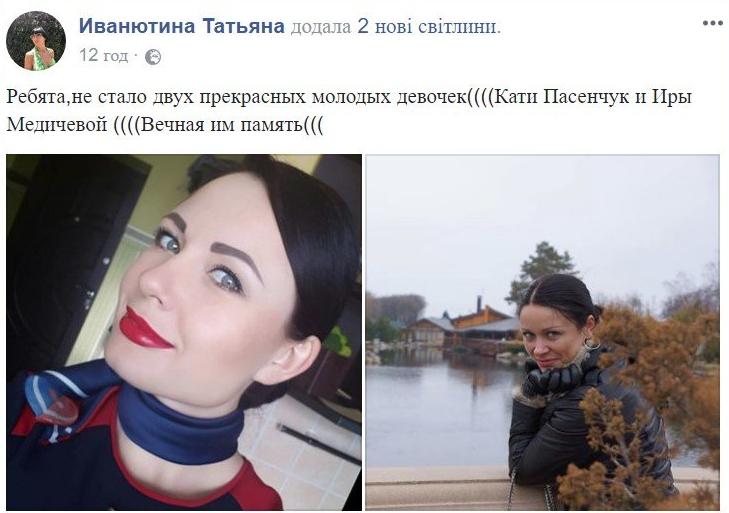 Интернет-пользователи, которые знали погибших, делятся в соцсетях их снимками и до сих пор не могут поверить, что это реальность. Они оплакивают двух молодых девчонок Катю Пасенчук и Иру Медичеву. Стюардессы жили на том этаже, откуда террористы начали атаку. У них не было времени, чтобы спрятаться, поэтому они сразу попали под обстрел. Коллеги пишут, что погибшие были близкими подругами.