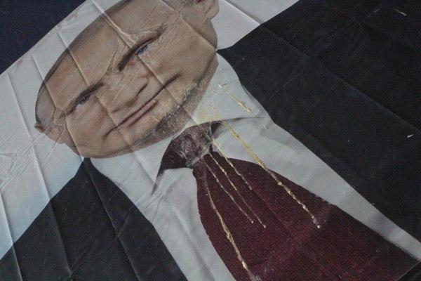Также отмечается, что баннеры с Владимиром Путиным в минувшие выходные были также испорчены в Кургане - там их забросали зеленой краской.