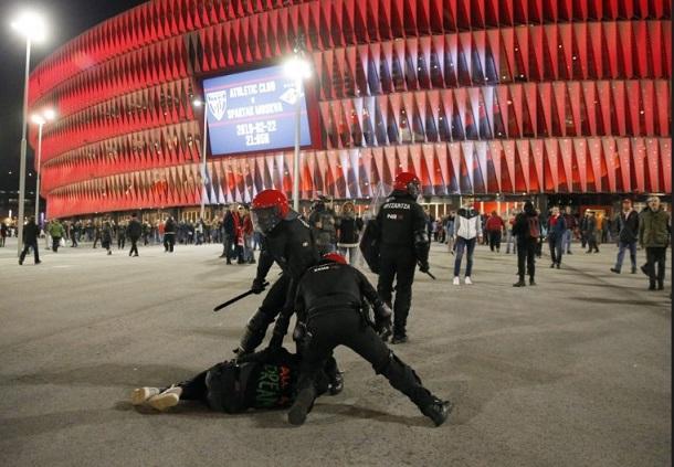 На севере Испании в городе Бильбао перед матчем 1/16 Лиги Европы ультрас «Спартака» (Москва) и фанаты испанского «Атлетика» схлестнулись в кровавой драке. Во время потасовок ранения получили четыре человека, погиб сотрудник полиции.