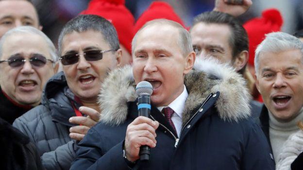 В субботу, 3 марта, на Московском стадионе "Лужники" прошел митинг-концерт в поддержку президента РФ Владимира Путина, который собирается вновь переизбраться на эту должность на выборах 18 марта.