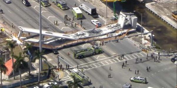 На юге штата Флорида конструкция железобетонного пешеходного моста в четверг, 15 марта, упала на заполненную автостраду, сообщает Час Пик со ссылкой на зарубежные СМИ.