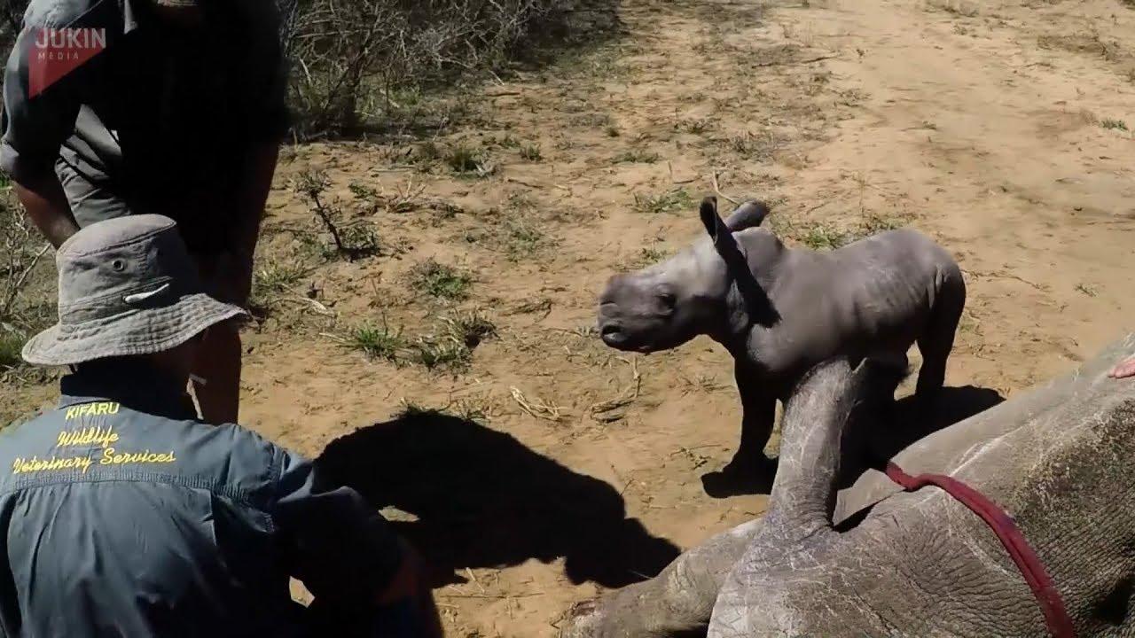 Как говорится в сообщении, детеныш бросался на работников парка и хотел отогнать их от матери. У детеныша еще не вырос рог, тем не менее, он лихо атаковал ветеринаров.