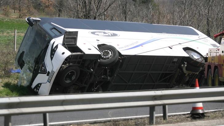 Автобус направлялся из курортного города Бургас в Софию. Возле населенного пункта Вакарел водитель легкового автомобиля выехал на обгон и ударился о бок автобуса. После удара автобус съехал с трассы и перевернулся.