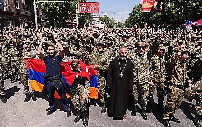 Сегодня, 23 апреля, в центре Еревана Армения, к демонстрантам, требующим отставки премьер-министра Сержа Саргсяна, присоединились военнослужащие.