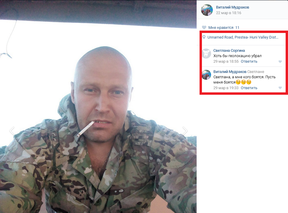 На снимок, который был опубликован в марте этого года обратили внимание активисты проекта «Ихтамнет_м0209», передает Час Пик. На своей странице в Фейсбуке они написали, что на фото изображен Виталий Мудраков, житель города Бийск Алтайского края, 1977 года рождения. Основатели проекта сообщили, что наемник воевал на Донбассе, а после отправился в Гану. Кадры, выложенные на его странице, говорят о том, что боевик, видимо, поехал инструктировать «местных братьев по русскому миру».