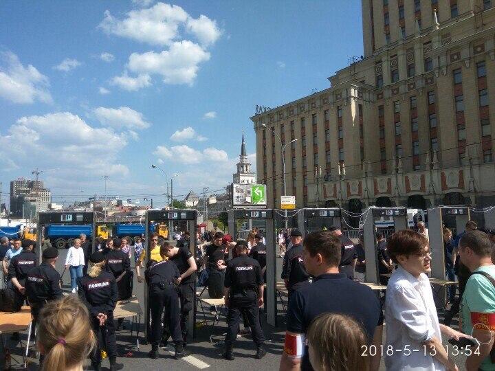 По данным Белого Счетчика, на 13:45 на территорию проведения митинга прошло около 600 человек. При этом поток частников через рамки постепенно возрастает, но все равно остается небольшим.