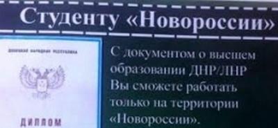 В донецких группах в социальной сети ВКонтакте пишут, что есть список вузов РФ, куда могут взять с "аттестатами" самопровозглашенных "ЛДНР", новость Донбасса передает Час Пик. Однако стоимость данного "удовольствия" очень велика. Также сообщается, что поступить на бюджет в вузы РФ практически невозможной. Жители ОРДЛО рассказывают, что правительство РФ не хочет компенсировать затраты на обучение, питание, проживание в общежитии студентов из "молодых республик", как это было в 2014 году.