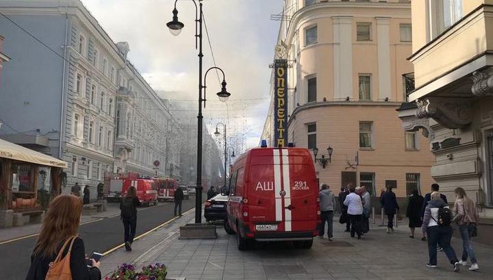 Вчера вечером в центре Москвы на Большой Дмитровке произошел пожар в Доме педагогической книги - горела его крыша