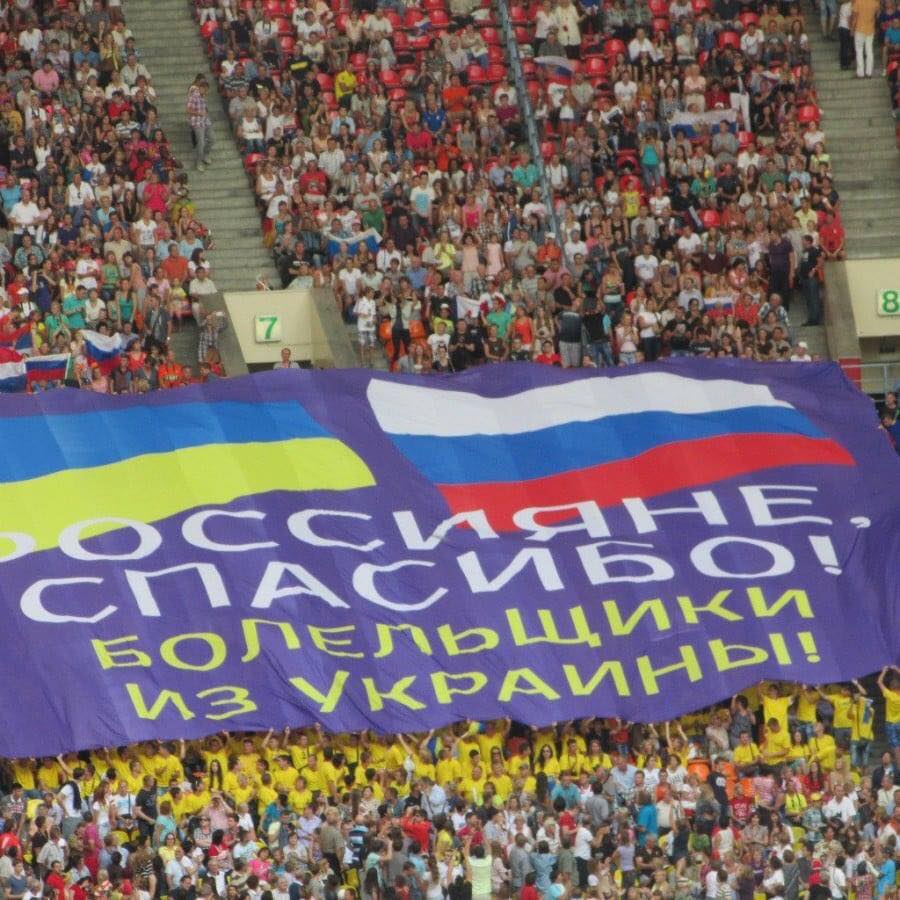 Россияне разгоняют в сети фейк о ЧМ-2018 с громким названием: "Это не покажут в Украине". Они разместили фото, на котором видно, как украинские болельщики развернули на стадионе баннер с благодарностью РФ.