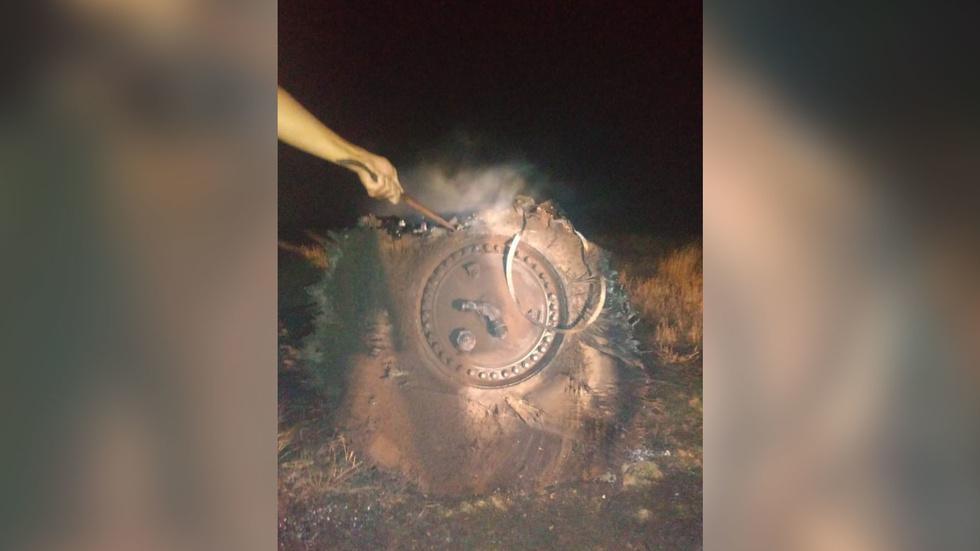 Люди быстро собрались у места падения, чтобы потушить огонь. Там же нашли обломок размером три на три метра. Он был похож на люк с материалом, напоминающим ткань.