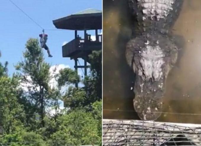 Отец и сын спускались на троссе, но застряли прямо над аллигаторами. Причиной произошедшего стали неполадки в работе оборудования аттракциона.
