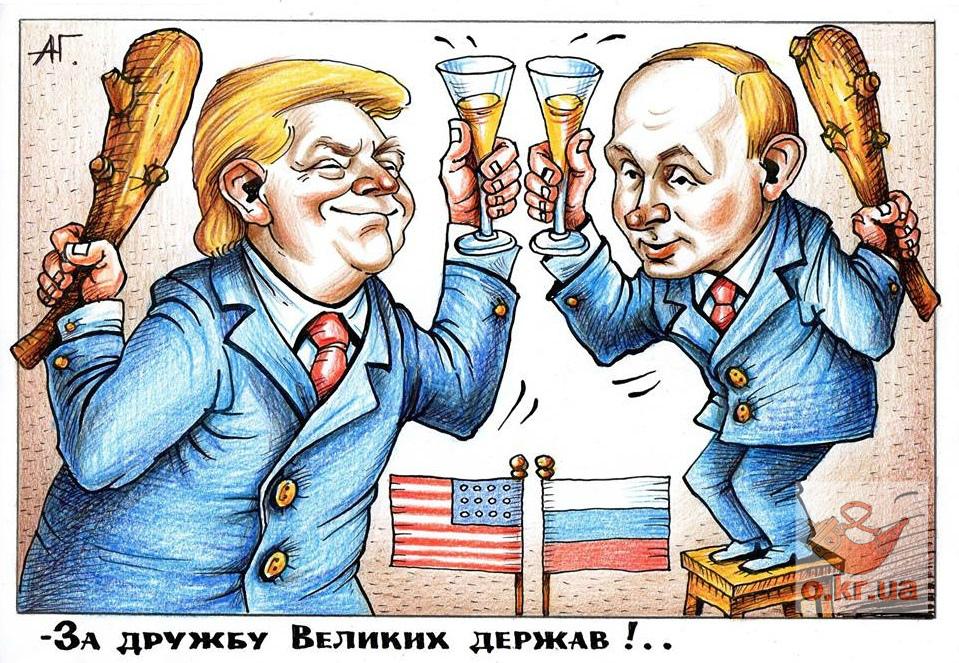 Пользователи социальной сети Twitter яркими карикатурами высмеяли встречу Владимира Путина и Дональда Трампа, передает Час Пик.