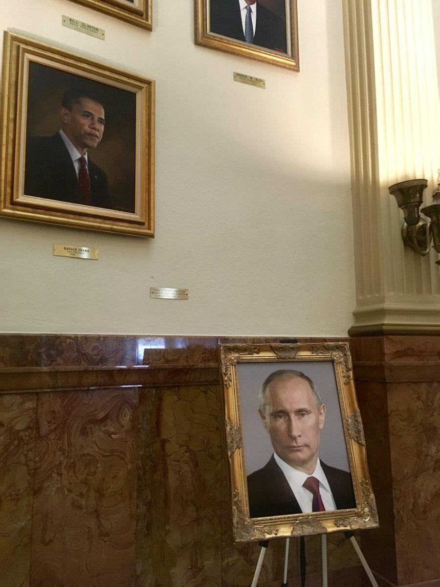В Капитолии штата Колорадо в галерее портретов президентов выставили фото российского главы Владимира Путина вместо Дональда Трампа.