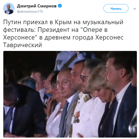 Еще одна серия фотографий была снята 4 августа в Севастополе, куда Путин прибыл на фестиваль "Опера в Херсонесе". Пользователи сети отметили, что и здесь президент РФ сам на себя не похож.