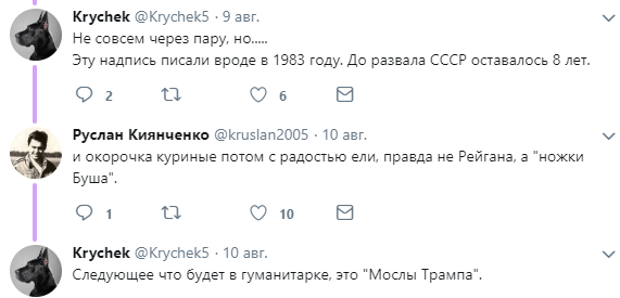 В комментариях к посту вспомнили, как накануне развала СССР россияне так же беспечно относились к санкциям США, а через несколько лет обнищавшее население РФ с радостью кормилось "ножками Буша".