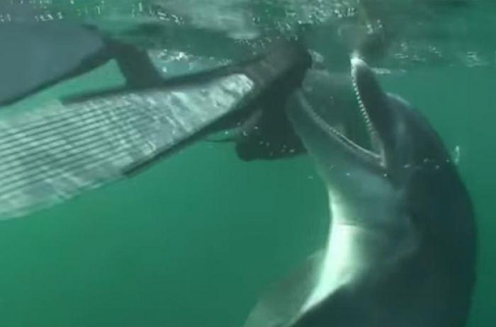 Жителям французской деревни Ландевеннек запретили нырять и плавать у береговой линии в тех случаях, когда рядом замечен дельфин по кличке Зафар.