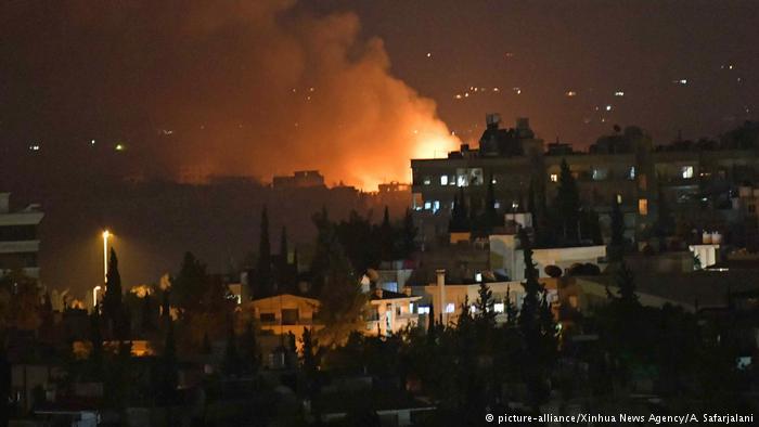 Серия мощных взрывов прогремела в ночь на воскресенье на авиабазе Меззе правительственных войск Сирии.
