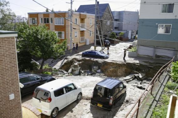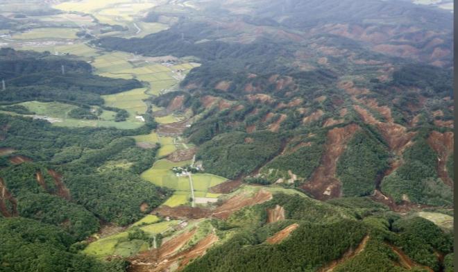 Аэрофотосъемка показала десятки оползней, обнажающих бесплодные склоны холмов недалеко от города Ацума на юге Хоккайдо, с холмами красноватой земли и упавшими деревьями. Рухнувшие остатки того, что раньше было домами или сараями, разбросаны на большой территории.