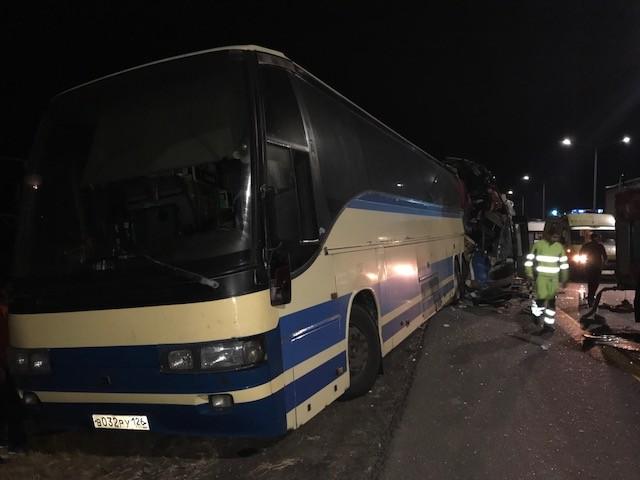 Сообщается, что пассажирский автобус Volvo остановился на обочине дороги, так как у него возникла техническая неисправность. В этот момент в него на полном ходу влетел другой пассажирский автобус Neoplan.