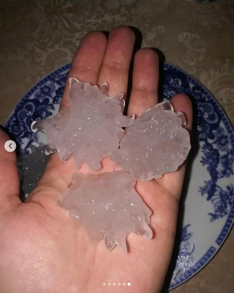 Днем в регионе началась гроза, а некоторое время спустя - сильнейший ливень. Вскоре с неба посыпался гигантский град размером с яйцо.